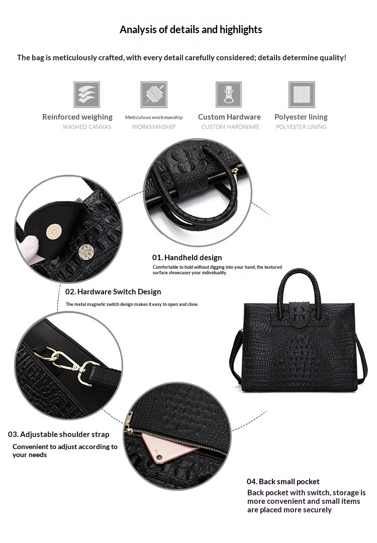 Alligator Skin Pattern Large-capacity Tote Bag
