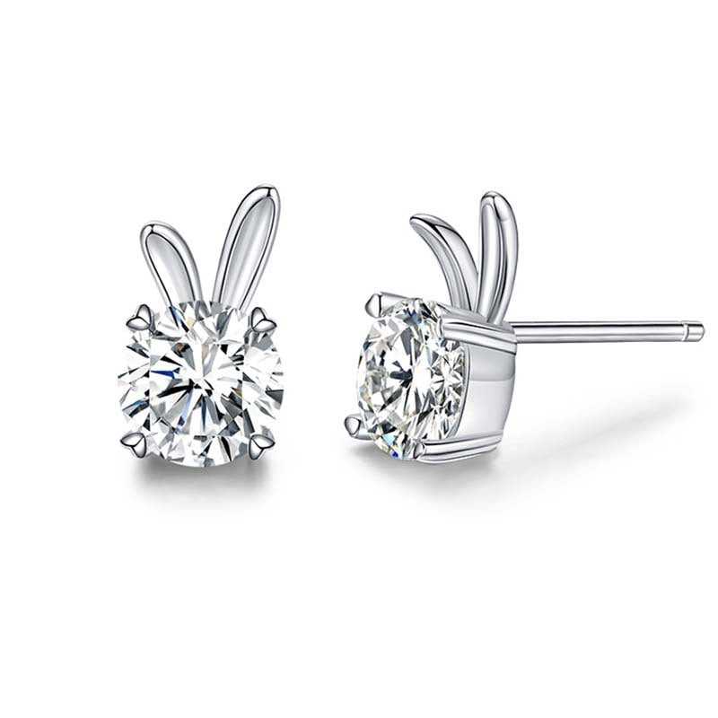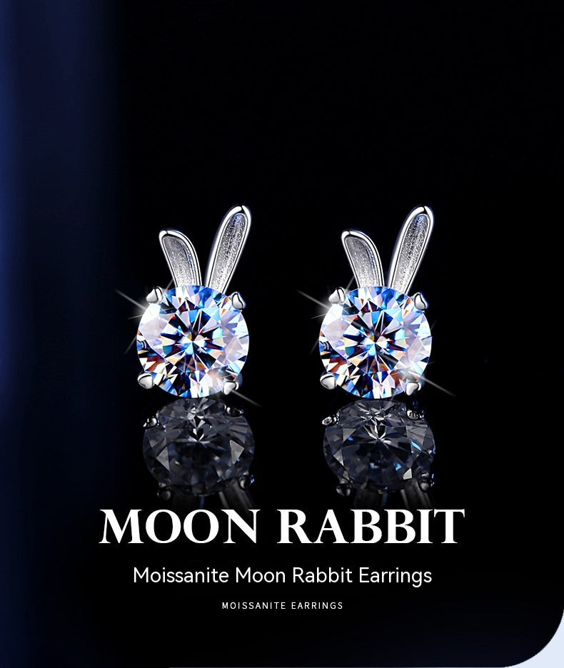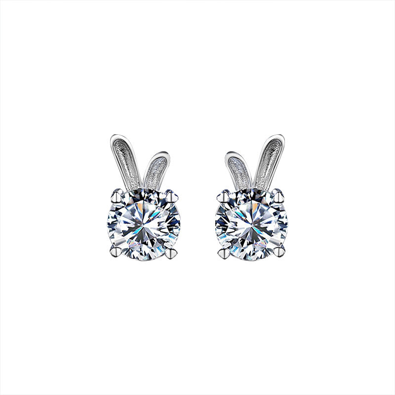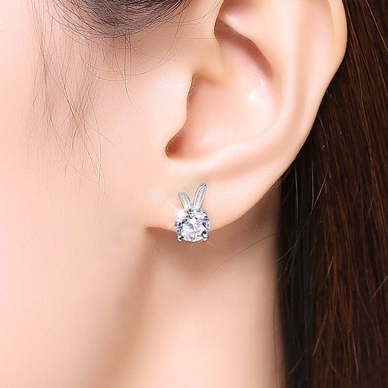 Color: Rabbit moissanite ear studs 0.5 carat , rabbit moissanite ear studs 1 karatMaterial: Silver