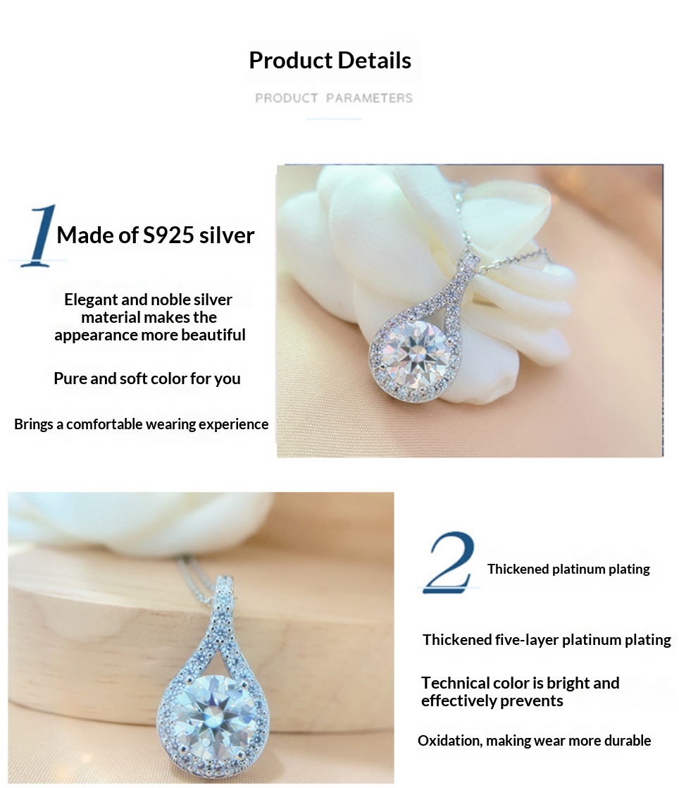 S925 Sterling Silver Moissanite Waterdrop Necklace